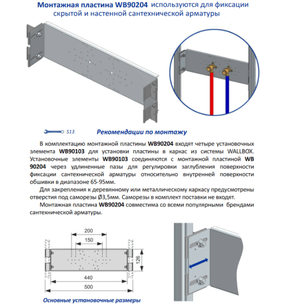 Монтажная пластина Wallbox для сантехнической арматуры WB 90204