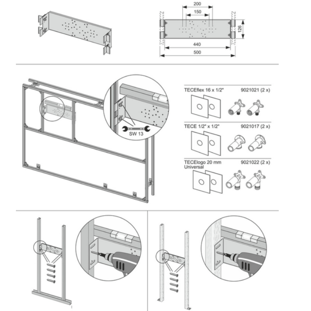 Монтажная пластина Tece TECEprofil для сантехнической арматуры 9020041